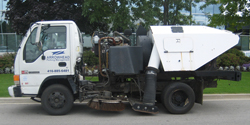 “We pushed getting into that [daily/weekly retail sweeping] market a little bit more,” said Lemmon. ” people want the image but it seems the money is not there and there’s no law in place to say that retail areas need to be cleaned up. The difference between the US and our area of Canada is that in the US you have sweeper trucks going out and doing the job. Here, you have guys going out with a broom and dustpan who goes around the parking lot and picks up litter.