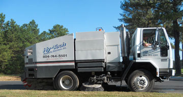 In 1985, Virginia’s Marc Chimento launched himself into the sweeping business by making an unlikely choice for a first sweeper – a slide-in Tennant sweeper with no gutter broom or dump. “It was all I could afford,” said Chimento. “To clean the curb I broke a pushbroom handle in half and taped the shortened broom to my arm. I’d hold the chassis door open with my foot as I drove along with my arm hanging out cleaning the curb. Then, when it came time to dump, that meant shoveling out the hopper with a coal shovel.”Perseverance paid off, though, and it wasn’t long before Chimento purchased what he calls his “first real sweeper,” a Schwarze 343-D. From that modest beginning, though with many an up and down in between, Hy-Tech Property Maintenance has grown into a do-it-all contracting powerhouse with over 100 employees and a roster of in-house expertise that spans over a dozen types of services.